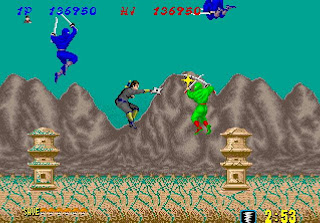 Posle fenomenalnih vozhnji koje je Sega izbacila za automate u drugoj polovini osamdesetih godina na red su doshle i akcione igre. Ovde konkretno vodite nindzhu, ubijate teroriste i deaktivirate bombe a na kraju svakog sveta treba preci i glavnog neprijatelja te oblasti. Grafika je vrlo lepa, prilichno bogata detaljima i sharena a prisutan je i skrol u dve ravni. Zvuk je prilichno bogat, muzika je sasvim odgovarajuca a kontrole prilichno jednostavne. Jedan taster sluzhi za korishcenje magije (eliminishe sve protivnike na ekranu, mozhe se koristiti 2 puta i ne obnavlja se), a po jedan josh i za skok i napadanje. Sem glavnog protivnika, sve ostale mozhete ubiti jednim shurikenom ili udarcem katane a i oni vas, shto znatno otezhava situaciju Inache, na pochetku su data 3 zhivota a posle svakog zavrshenog sveta mozhete zaraditi i dodatni zhivot na bonus nivou (shto je malo tezhe). S obzirom na interesantnu tematiku i interesantne lokacije, igra spada medju kvalitetne naslove a i mozhe se prilichno dugo igrati i sa jednim kreditom. Ipak, igrajte je u malim dozama jer vas sigurno nece drzhati predugo.