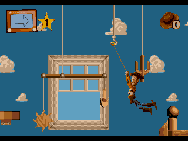 Shodno vremenu igra je naravno akcioni platformer a radnja vrlo usko prati priču filma uz minimalna odstupanja. Ljubitelji Diznijevog filma će biti zadovoljni jer su svi upečatljivi likovi tu, čak i njihovi glasovi i fore. Igrač preuzima ulogu kauboja Woody-a, jednog od glavnih protagonista filma. Woody je igračka sa kanapom za navijanje, i u igri taj kanap koristi kao bič. Pomoću kanapa igrač onesposobljuje neprijatelje tako što ih privremeno veže. Kanap se takođe može kačiti za kuke i Woody tako preskače na udaljene platforme do kojih skokom ne bi mogao doći, slično kao u Earthworm Jim-u. Kanapom se takođe mogu pomerati neki predmeti po potrebi, zavisno od zadataka koje igrač dobija.