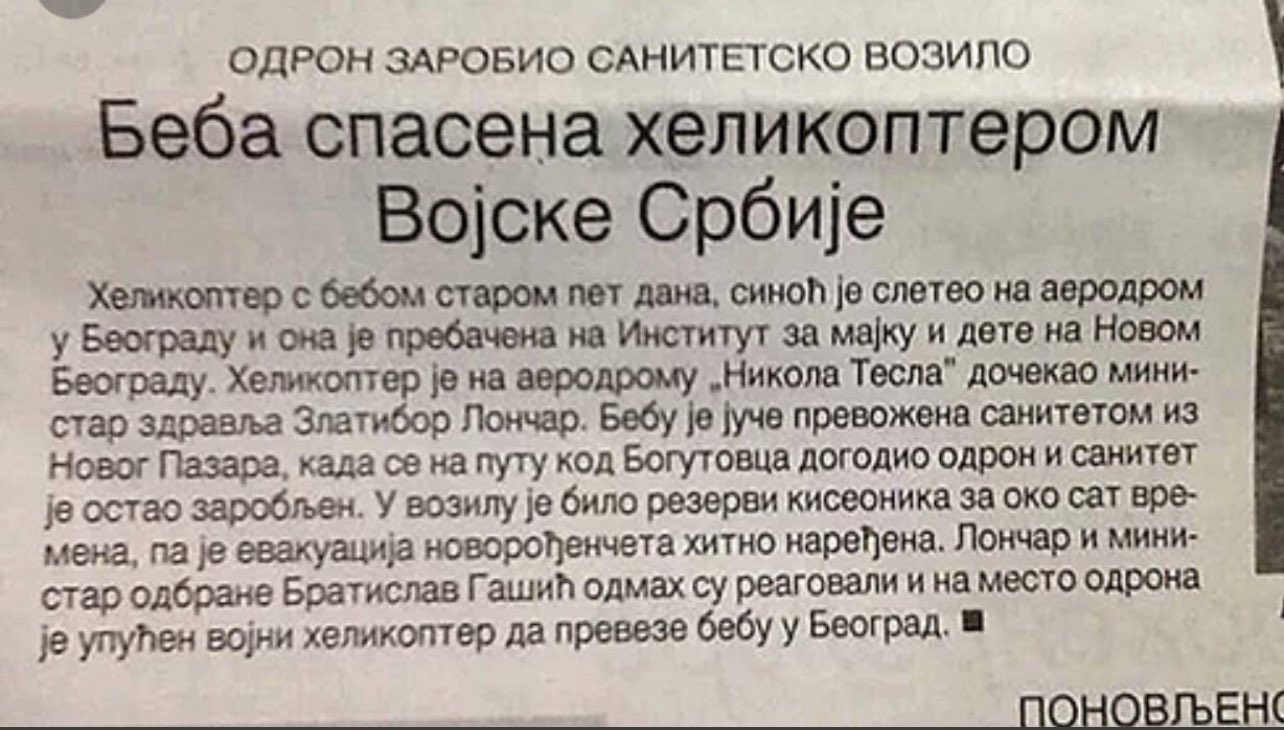 Ministar odbrane Bratislav Gašić smenjen je, ali ne zbog pada helikoptera već zbog seksističke poruke novinarki B92. Zlatibor Lončar je i dalje  ministar zdravlja.